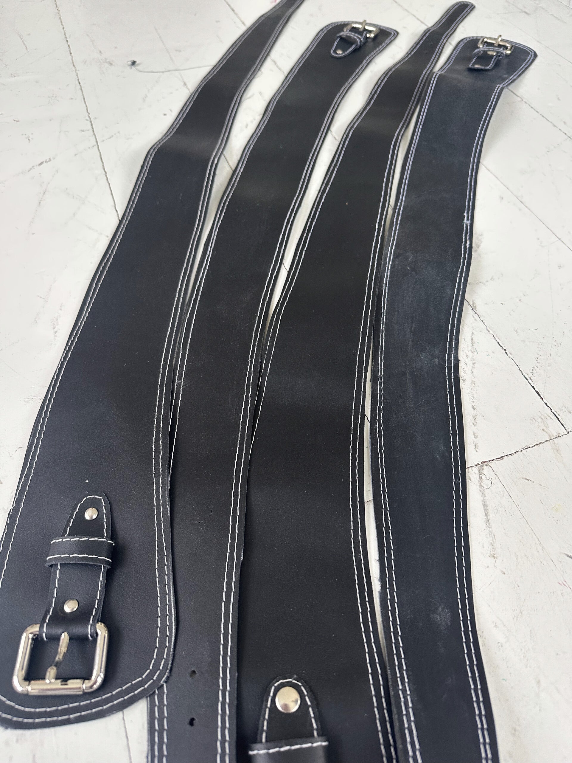 Made from deadstock black leather with white top stitching