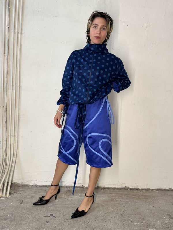 Blue&Blue jack: A light cotton dotted jack with ton sur ton sleeve part, the jack has a balloon fit, adjustable with ropes/ribbons. This jack is already sold, place an order for a similar product.